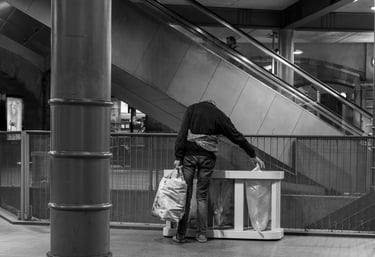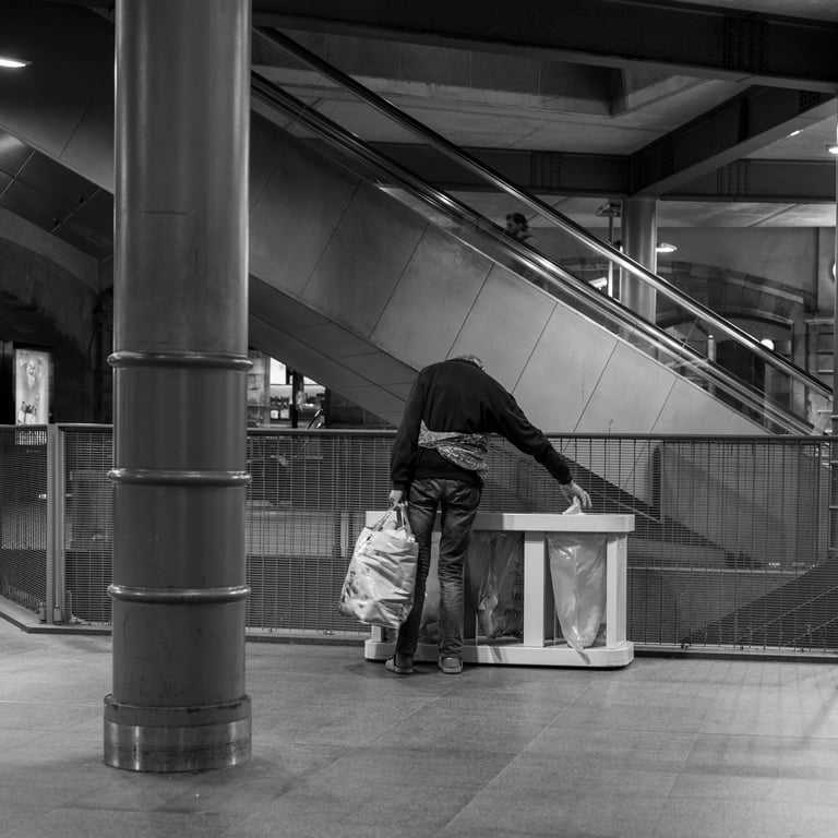 Met mijn camera's bezocht ik Londen, Parijs, Berlijn Amsterdam, Antwerpen, Rome, Düsseldorf, Bordeaux, Rotterdam en Frankfurt. Ik sprak met dakloze mensen, dronk koffie of at een kom soep met ze en maakte zo nu en dan foto's: gewone straatbeelden van wat iedereen die een stad bezoekt, tegenkomt. Mijn camera's waren niet meer dan de ogen van een willekeurige voorbijganger.