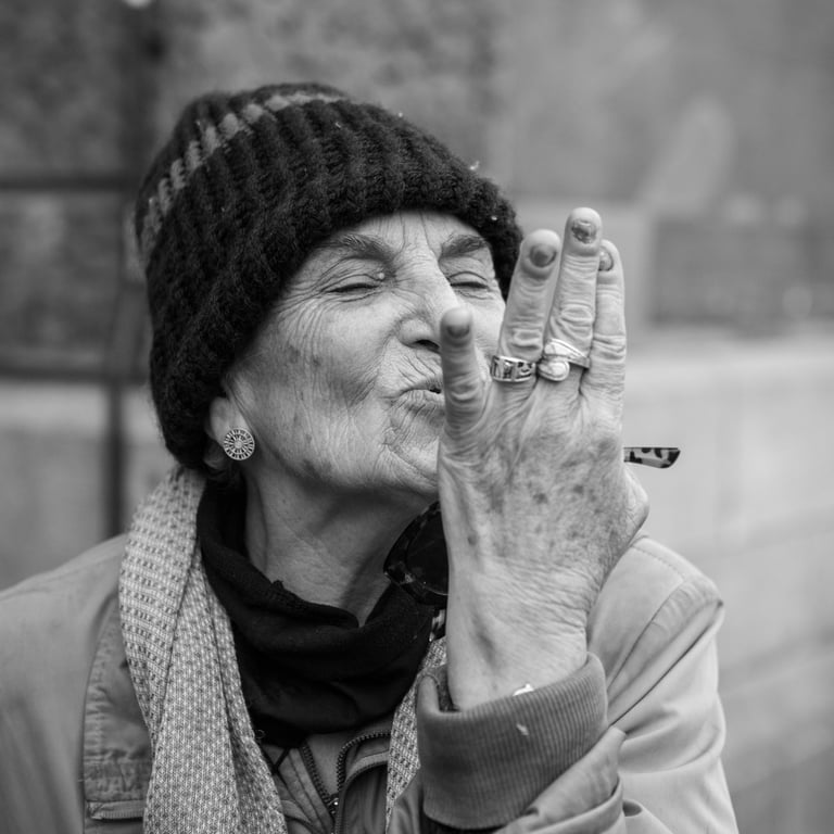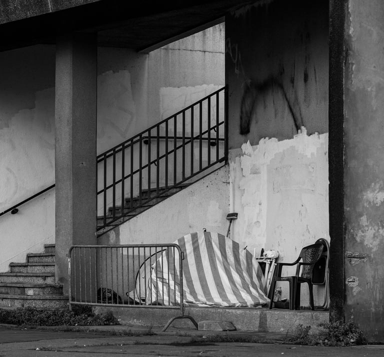 Tijdens mijn bezoeken aan de verschillende steden, zocht ik contact met dakloze mensen. Vaak was een kop koffie, een broodje of een sigaret meer dan voldoende om een gesprek te beginnen. Die gesprekken waren lang niet altijd beladen of afstandelijk; integendeel! Veel dakloze mensen zijn heel toegankelijk en bereid over hun leven te vertellen. Ze zijn vriendelijk, geïnteresseerd en behulpzaam. Natuurlijk zijn de verhalen soms hartverscheurend, zoals het verhaal van een tiener die ik sprak in Londen. Zijn ouders waren overleden. De huur van het huis kon hij niet betalen waardoor hij noodgedwongen op straat kwam.